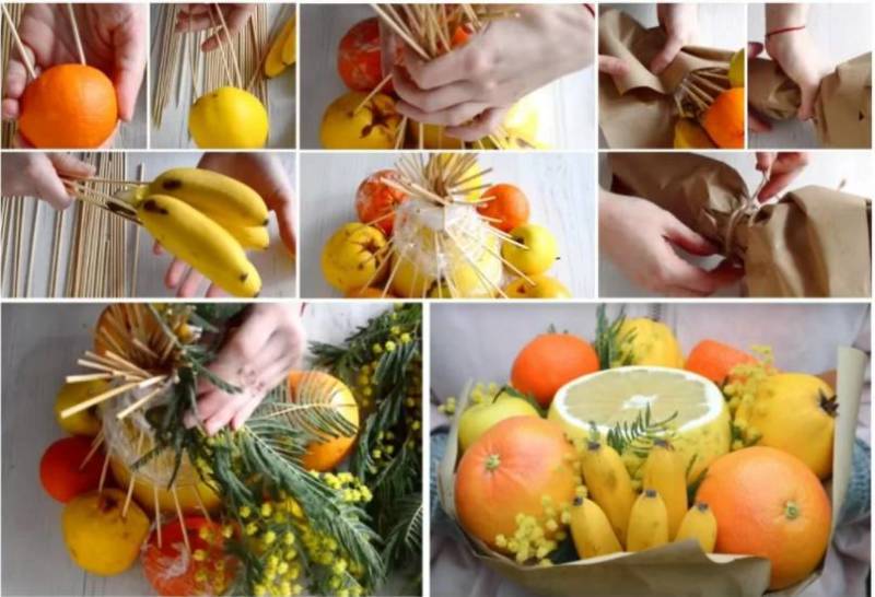 Как да си направим букети от плодове със собствените си ръце - лесни майсторски класове стъпка по стъпка с идеи за снимки