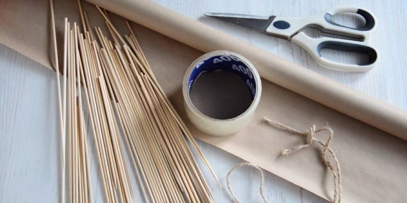 - Залепете пръчките една за друга и ги увийте с крафт хартия.