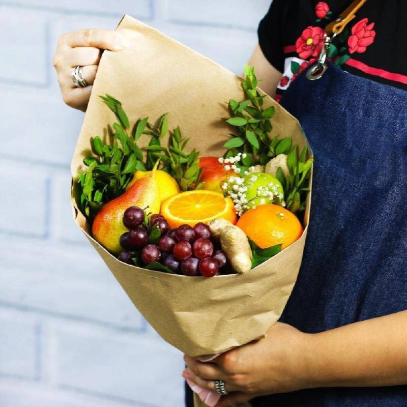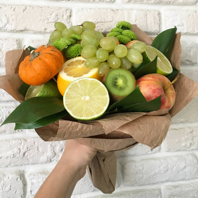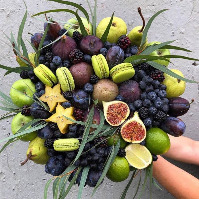 Уникалността на всеки букет от плодове се състои в това, че е възможно да се избере комбинация от плодове и елементи на украсата му, въз основа на вкусовите предпочитания на човека, на когото ще бъде подарен.