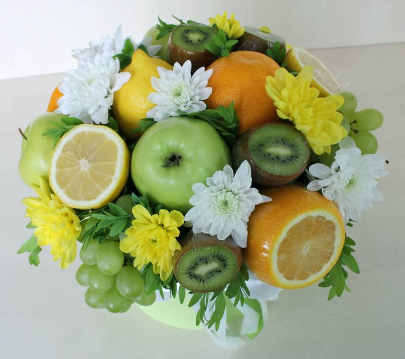 Плодовият букет е бюджетен, но много оригинален и апетитен.