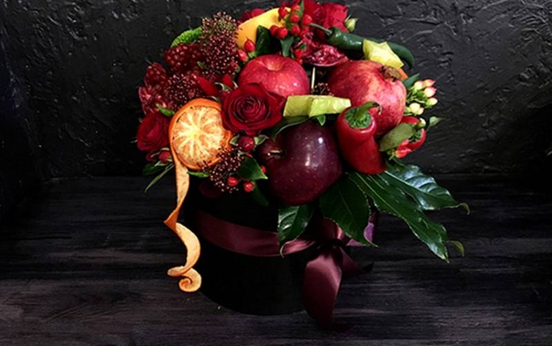 Букет от плодове с цветя
