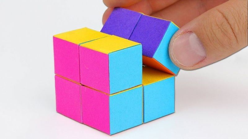 - Сега изрежете заготовката по линиите, сглобете куба и го залепете на местата на съединяване.