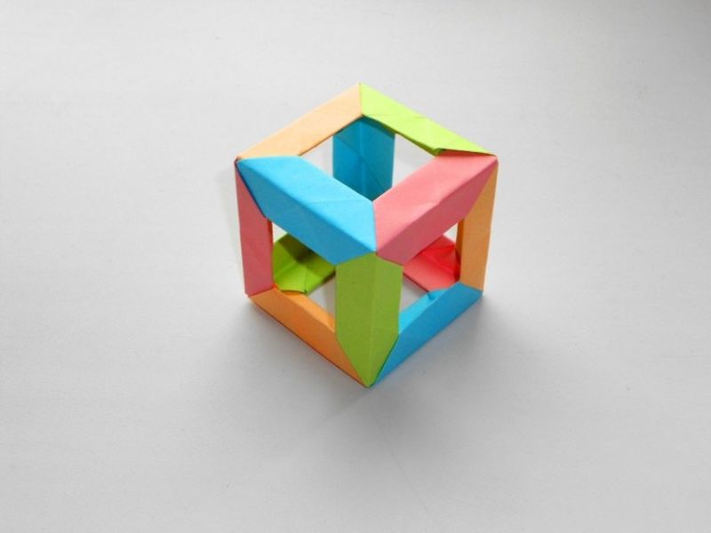 Започнете с доста проста фигура - куб. Всички страни на тази фигура имат квадратна форма. В интернет можете да намерите готова схема за изработването му или да я нарисувате сами:
