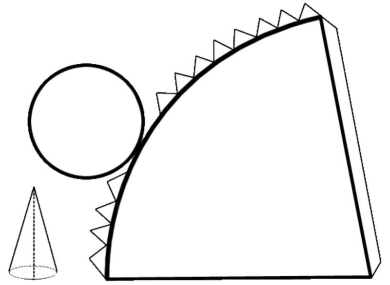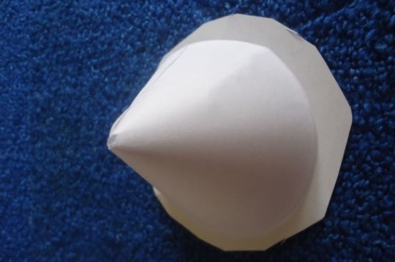 - Свийте този полукръг на конус с остра лопатка в края и го залепете.