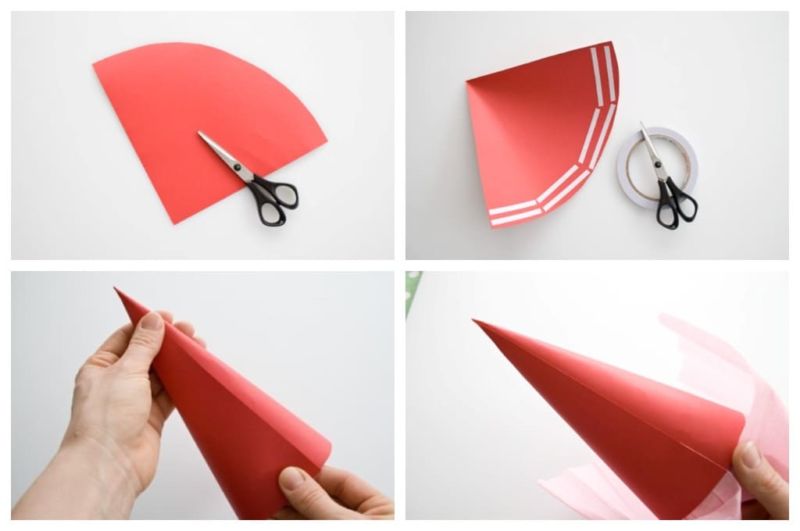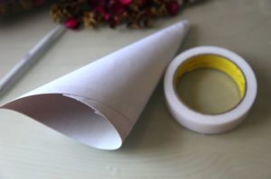 - След това сгънете заготовката на конус, като предварително разнесете лепило от едната страна.