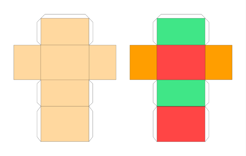 Начертайте схема, подобна на куб, като замените квадратите с паралелепипеди. Проследете точките на залепване, изрежете детайла, сгънете паралелепипеда и го залепете.