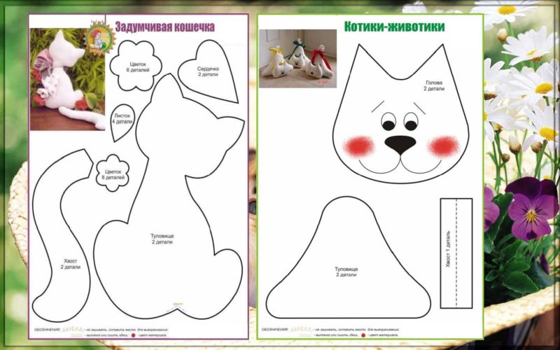 По-добре е да вземете модел на котка в цял ръст със страничен изглед. Тогава няма да се налага да шиете частите поотделно.