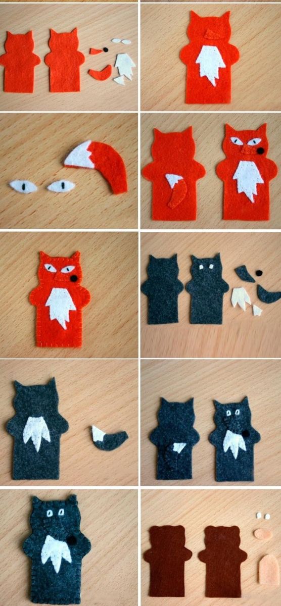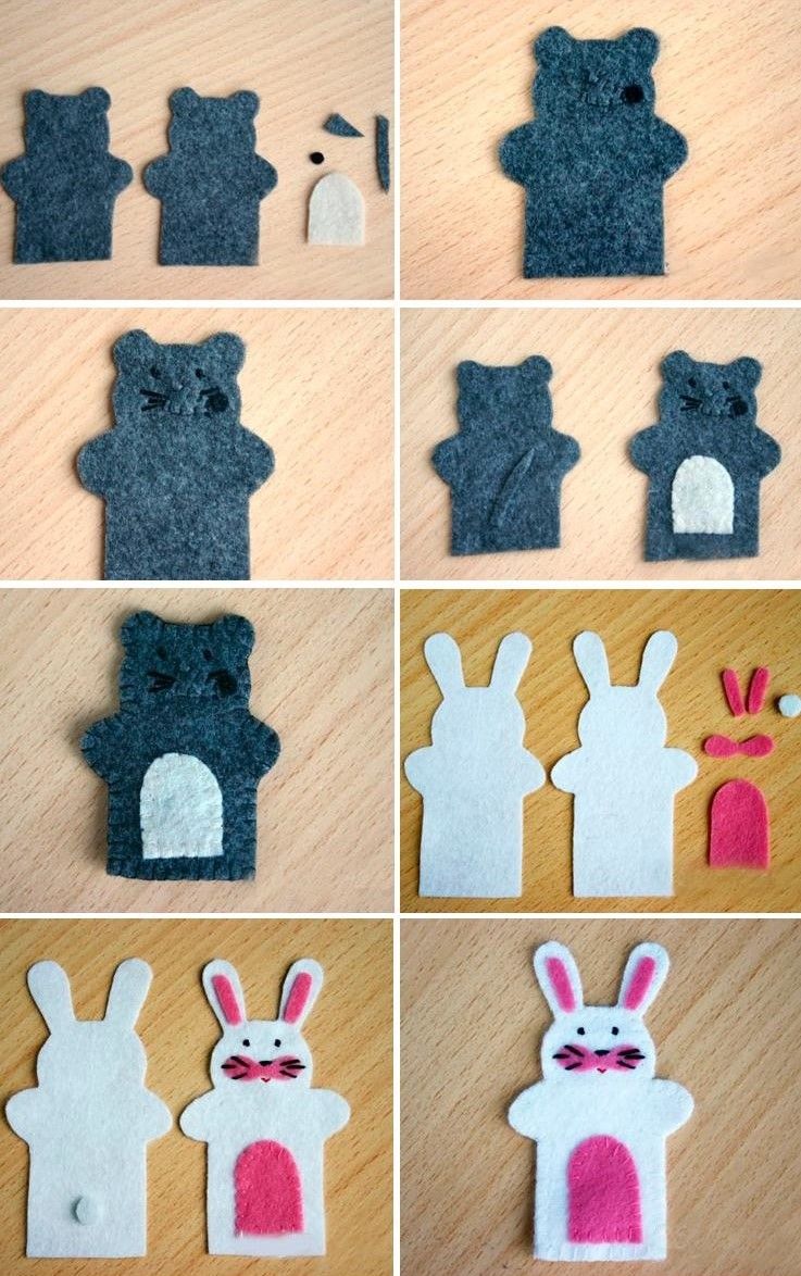 - Останалото е лесно. Детайлите се изрязват и зашиват. Кукленият театър с пръсти е готов и може да се играе.