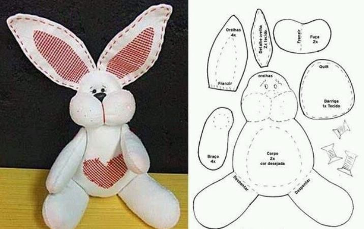 Най-лесният начин за ушиване на заек - това е да се направи пълен модел (от ушите до лапите).Необходимо е да се изрежат 2 части от материала в бяло: