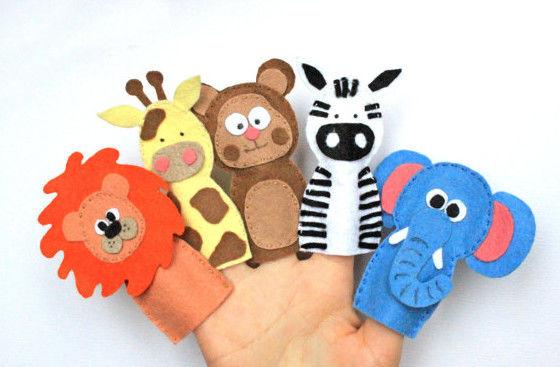 С тези играчки детето ще се забавлява да играе театър с пръсти. Това е забавно и учи детето да проявява въображение и правилни емоции. Можете също така да учите стихчета и песнички заедно с детето си:
