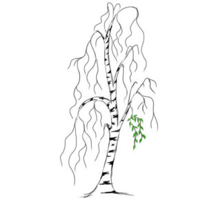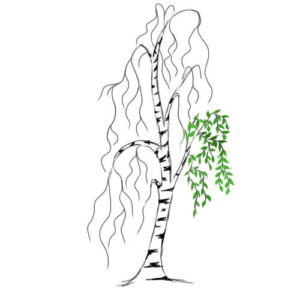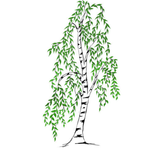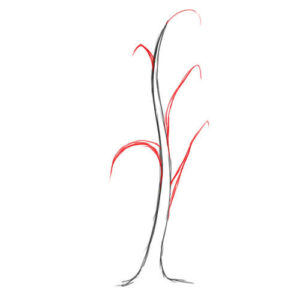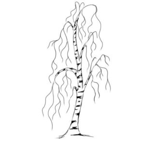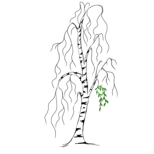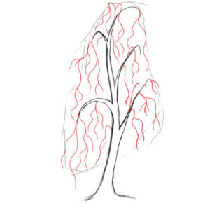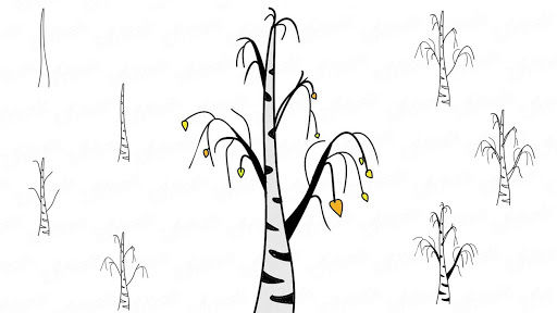 - Следващата стъпка е клоните да изглеждат по-естествено. За тази цел върху всяка част от скелета се рисуват по-фини клони. Тези линии вече са по-слаби и размерът им е малък. При брезата малките клонки висят надолу.