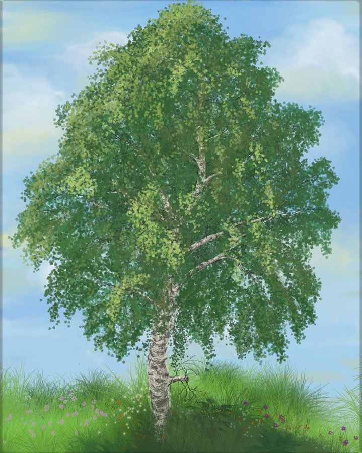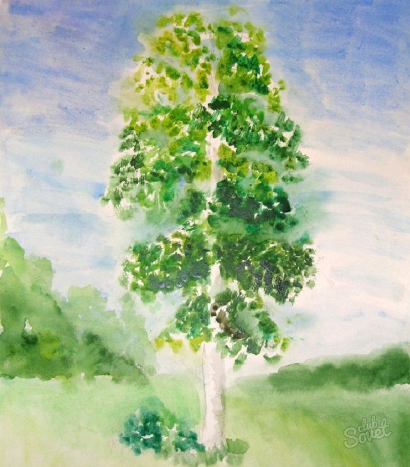 Дървото на снимката ще придаде цвят и настроение на картината. Съществуват различни начини за постигане на резултата и всеки сам решава как да нарисува бреза.