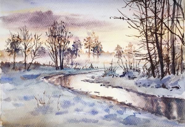 Зимен пейзаж в цветове