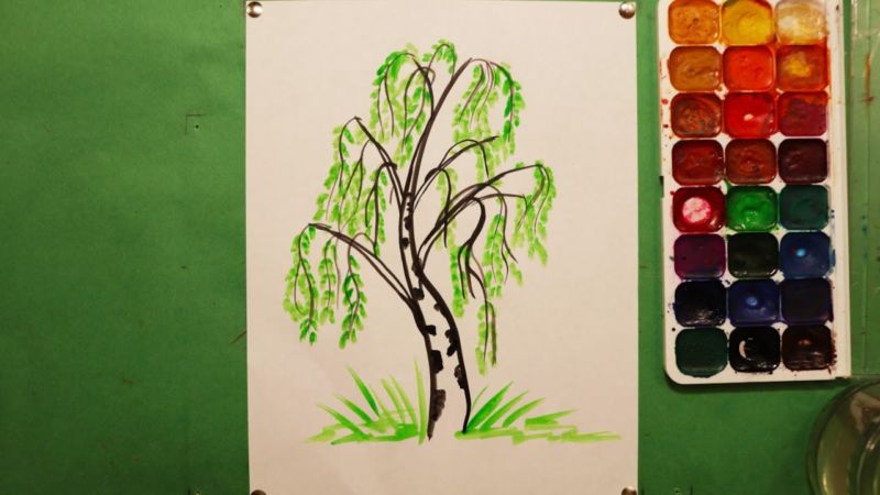 Някои хора смятат, че е по-лесно да възпроизведат техниката, като гледат урока на видео. Ако рисуването на бреза за деца се прави от малки деца, ще е необходима допълнителна помощ от учител. Процесът на създаване на прост чертеж е следният: