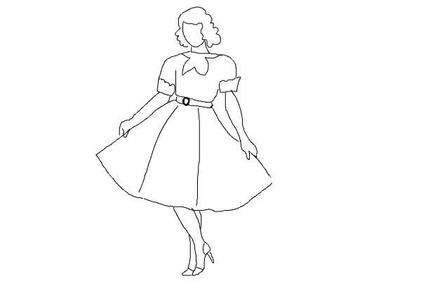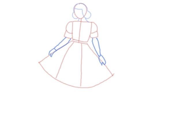 Външният контур е изобразен като дъга, извита встрани от тялото. Вътрешният контур се рисува по същия начин, но дъгата е по-малка и извита към торса.