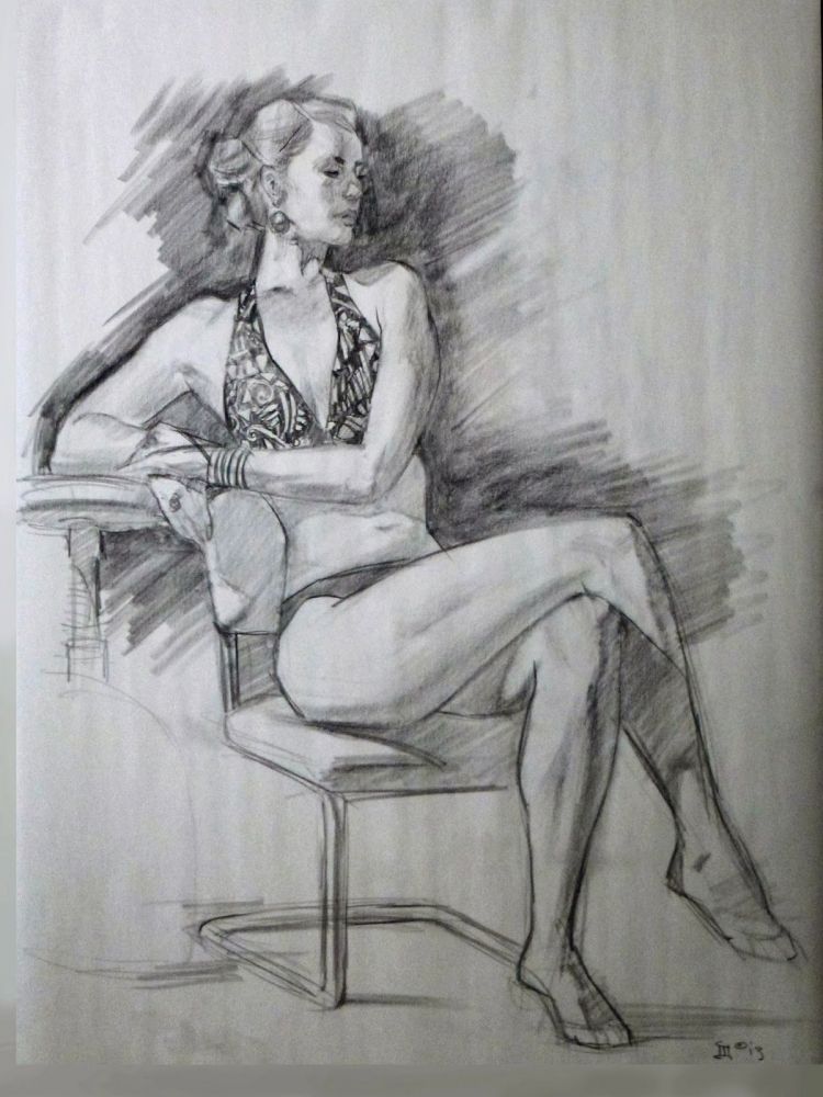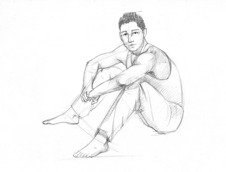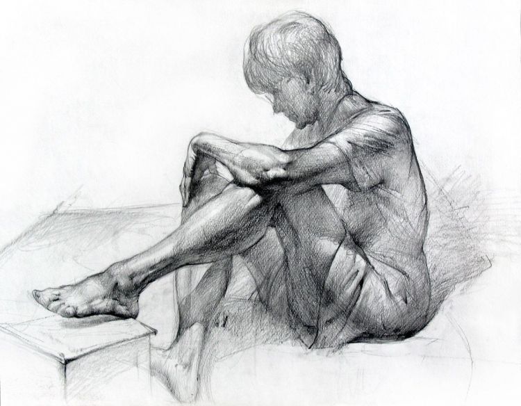 В художественото училище учат как да се скицира анатомичната структура - скелет, мускули, кожа. Полезно е да се определят по-точно отделните черти на фигурата на седящия, да се черпи от природата и от паметта.