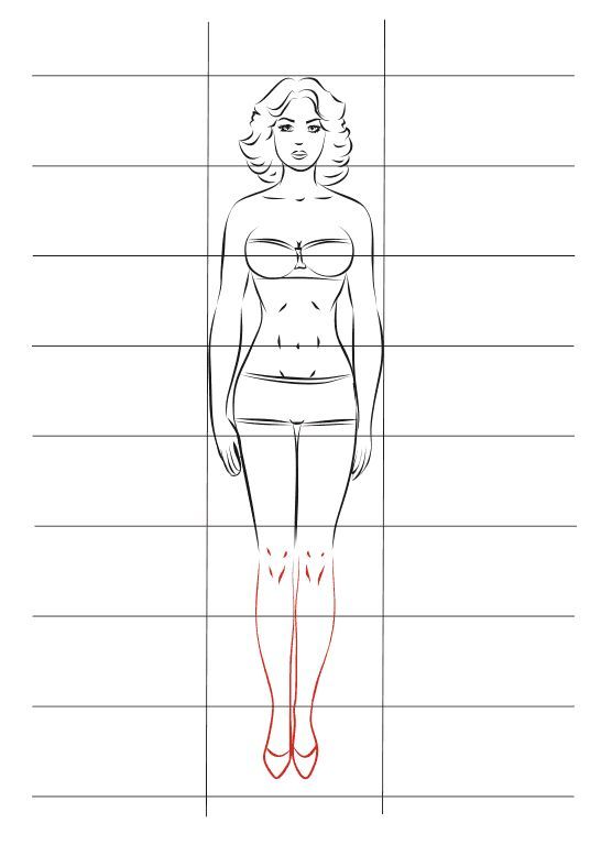 Желателно е първо да се направи приблизителен силует и само контур, а детайлите да се проследят, след като се нарисува цялото тяло. Това е по-удобно.