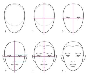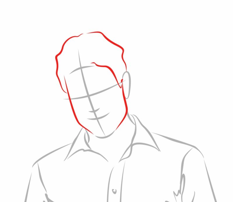 - Начертайте овал, за да изобразите главата.