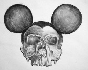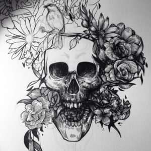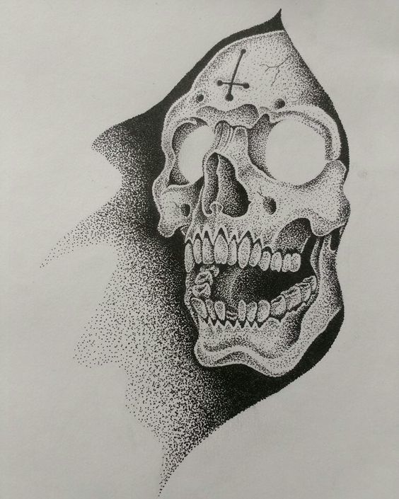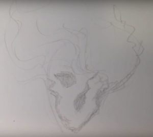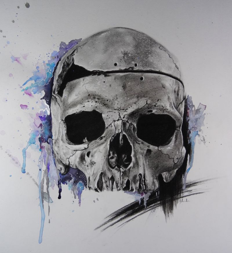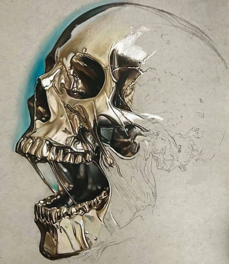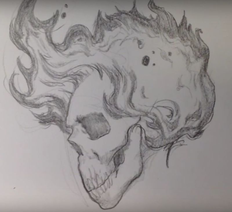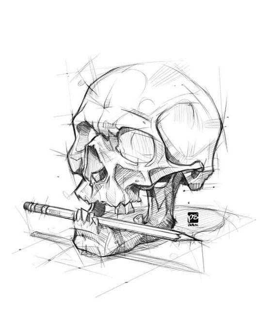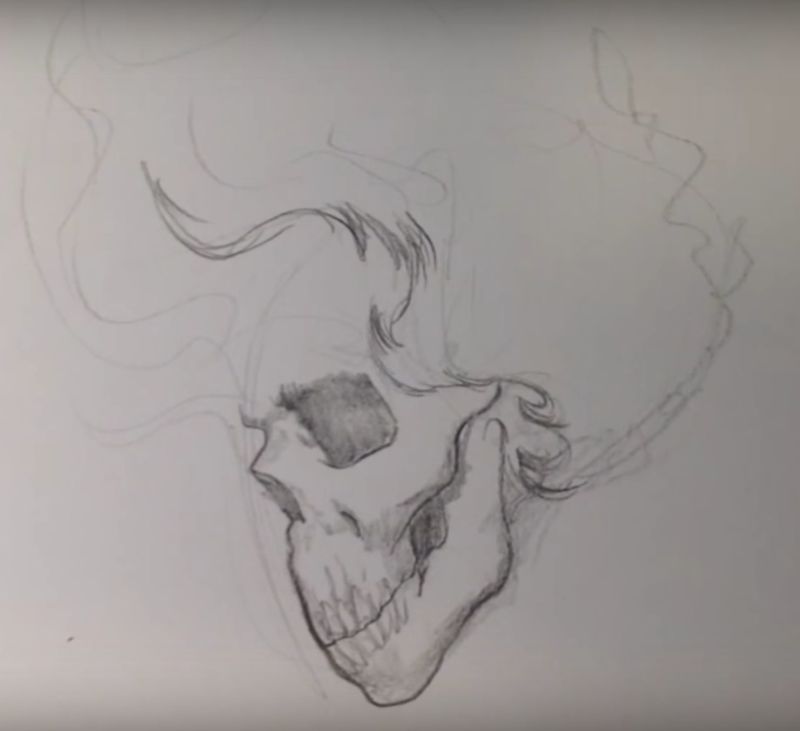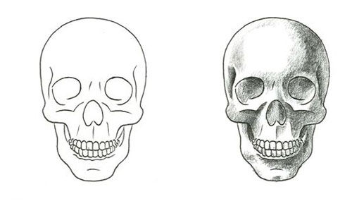 Гумата ще премахне всички ненужни щрихи и несъвършенства в рисунката. Черепът може да се нарисува и с бои или пастелни моливи.