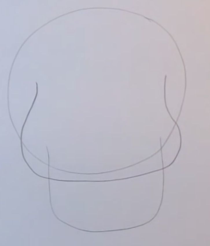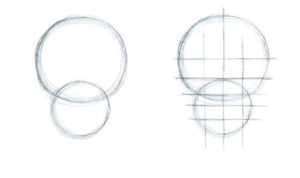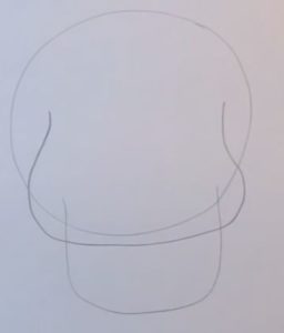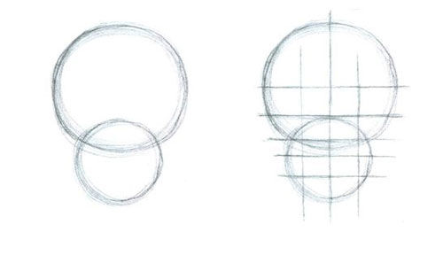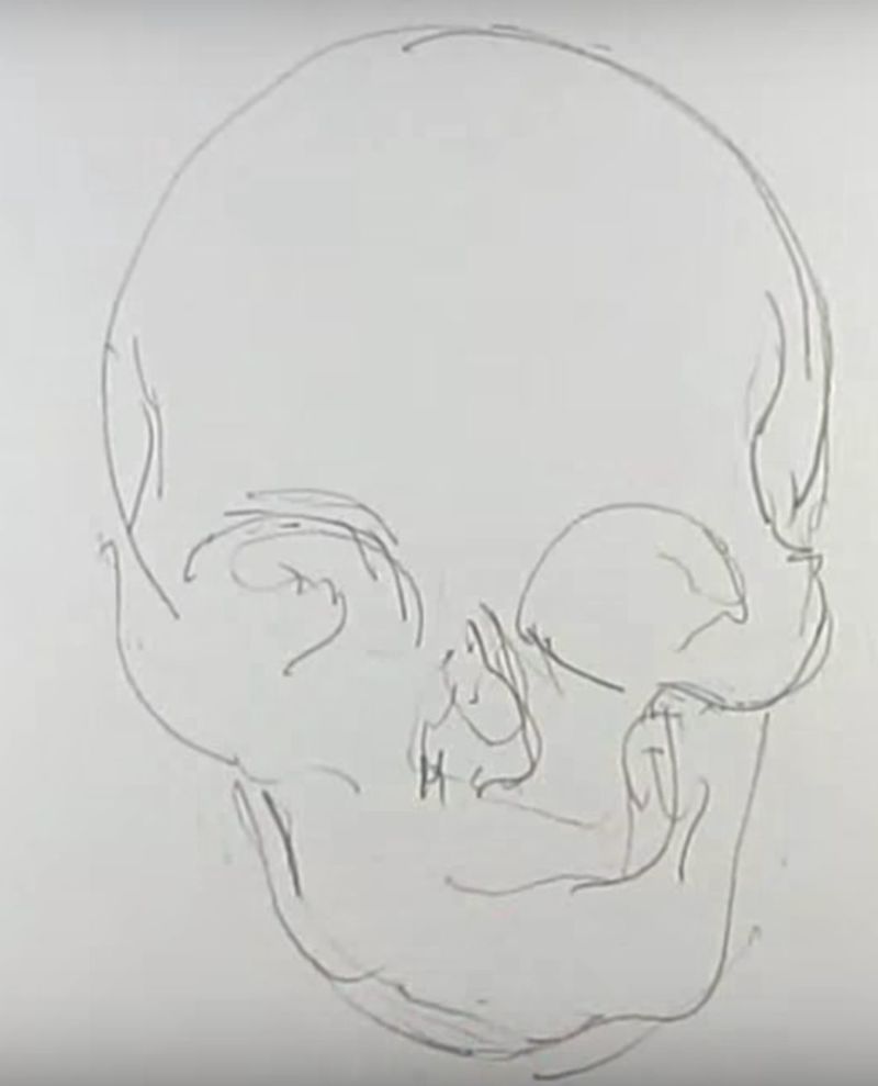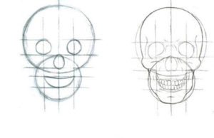 - След това трябва да се нарисува подробно самият череп. За тази цел в горната половина на предната част се очертават два овала.