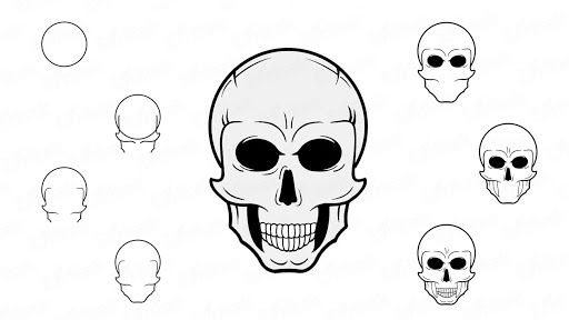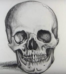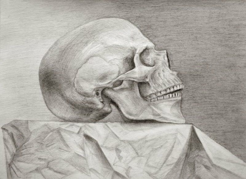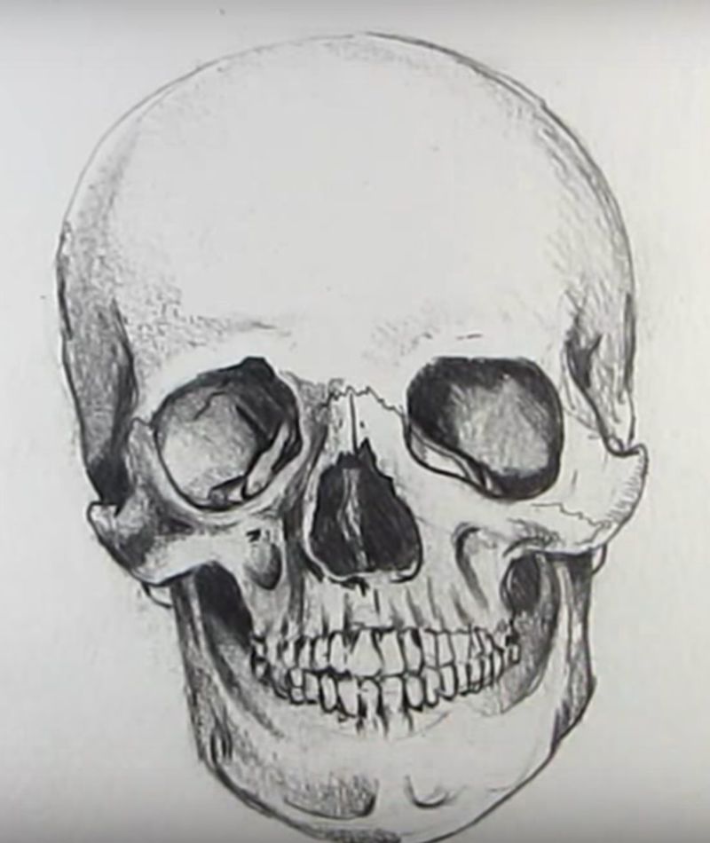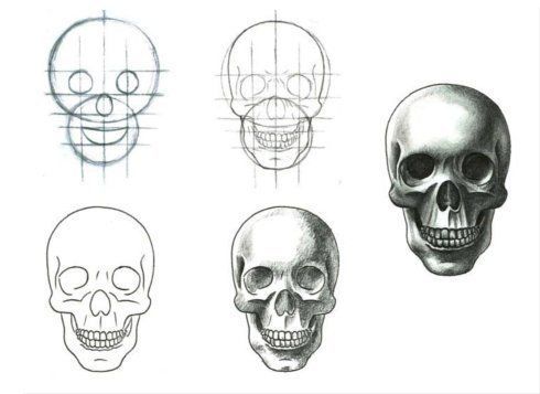 Как да нарисуваме черепа: семинари за рисуване стъпка по стъпка за различни техники и позиции