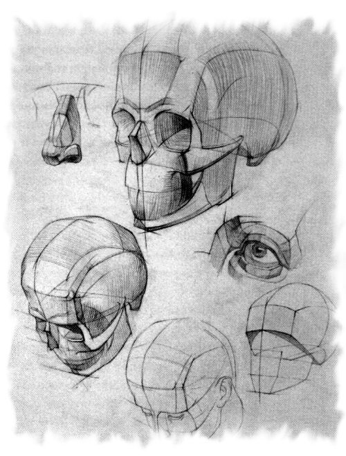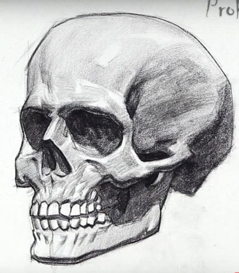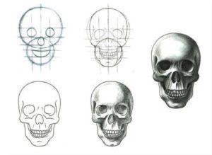 За рисуването на човешки череп на професионално ниво е необходим съвсем различен комплект: