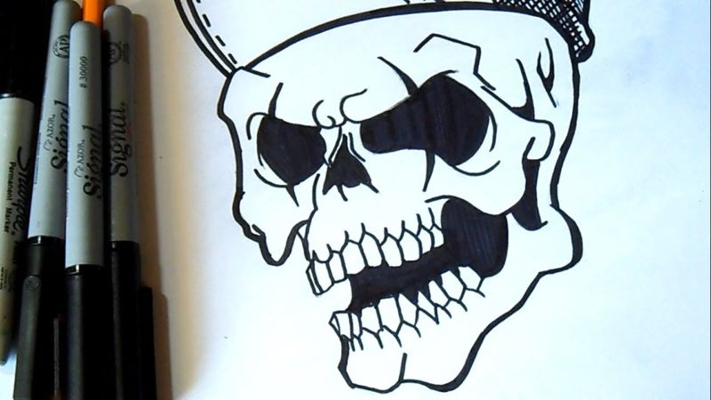 Инструкции за пресъздаване на нарисуван череп върху хартия: