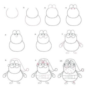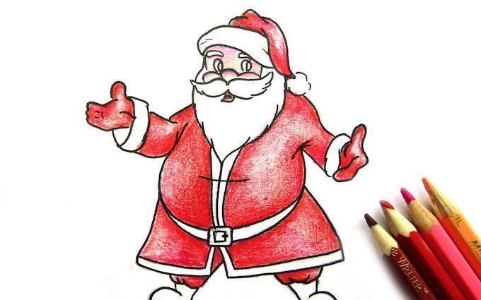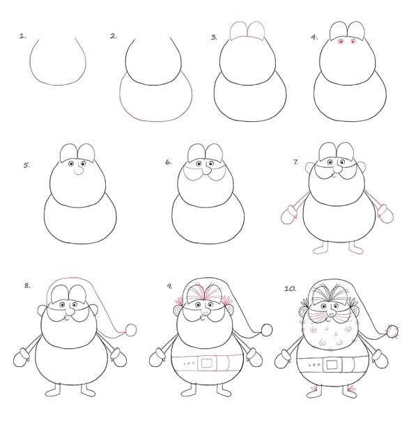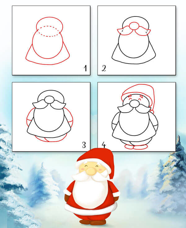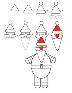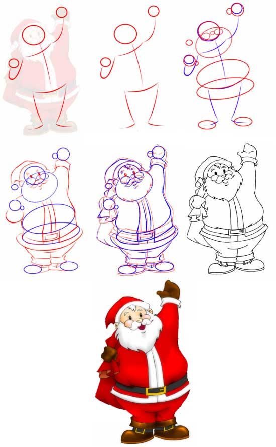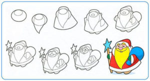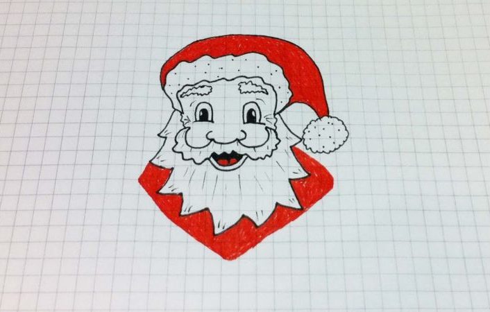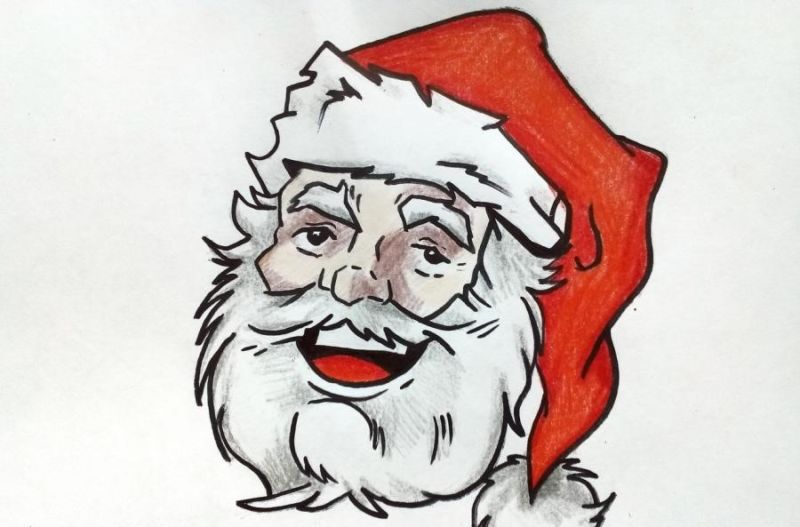 Карикатурата на Дядо Коледа е лесна за изпълнение стъпка по стъпка.