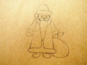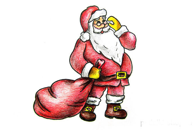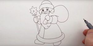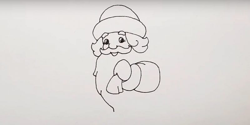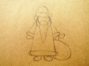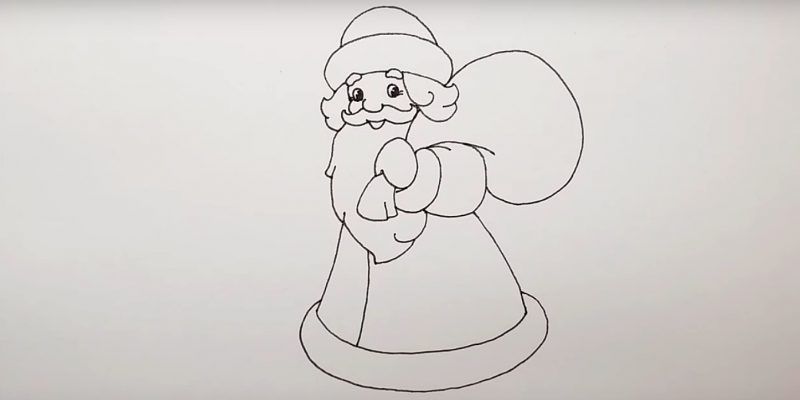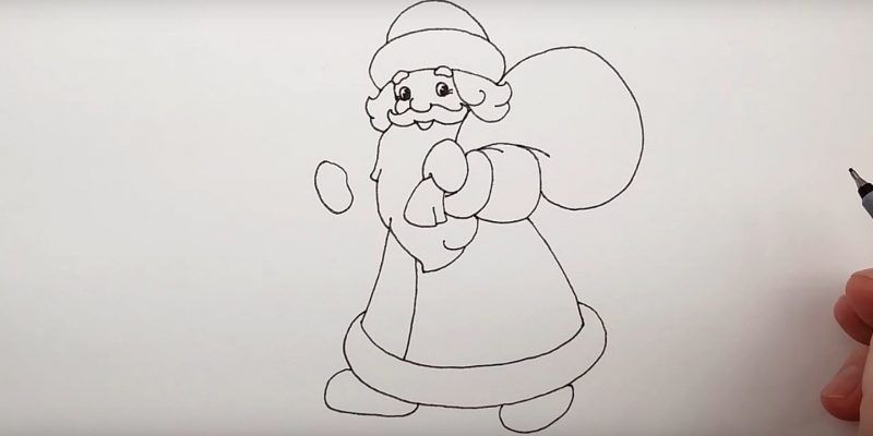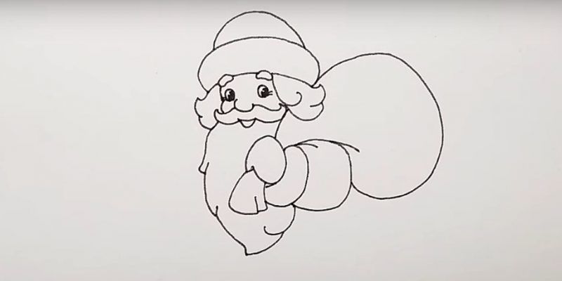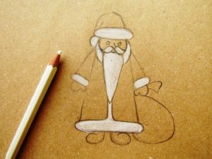 Как да нарисуваме Дядо Коледа с торба с подаръци с молив, стъпка по стъпка