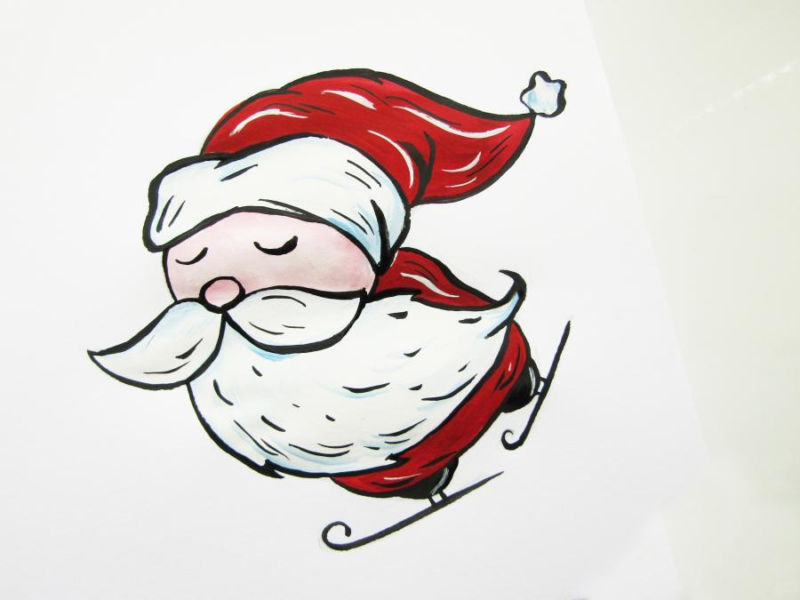 Рисуване на Дядо Коледа стъпка по стъпка с гваш