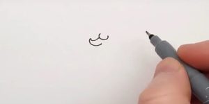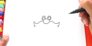 - Започнете със скица на носа с молив. Нарисувайте носа в средата на листа под формата на овал. Нарисувайте мустаци, които са леко завити към края на носа, и добавете сладка усмивка.
