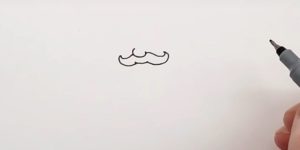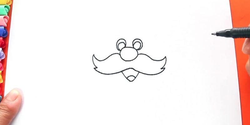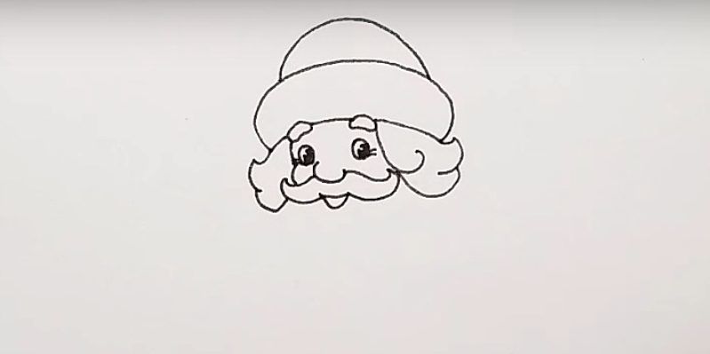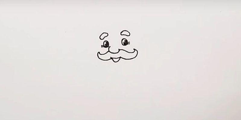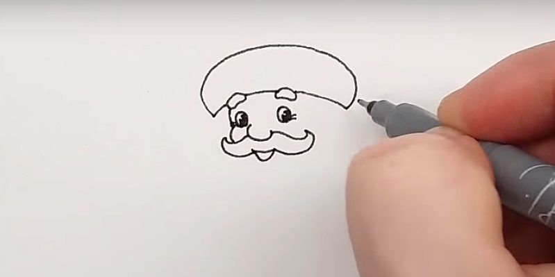 - Точно под чучура нарисувайте мустаци и отбележете пухкавите бузки. Под мустаците ще се крие весела усмивка. Завършете лицето, като нарисувате полукръгли линии на леко широки вежди, къдрици от двете страни на лицето и леки бръчки. Свържете най-горните точки на веждите и получете капачка на челото. Важно е дядото да стои в страничен завой.