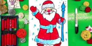 - Довършете чертите на лицето, добавете няколко бръчки и не забравяйте да придадете на дядо Мраз радостно и весело настроение! За да е пълна историята, поставете в шейната украсена елха и голям чувал с подаръци. Допълнете портрета на Дядо Коледа с вълшебен жезъл с причудливи шарки и креативна снежинка на върха!