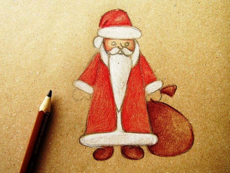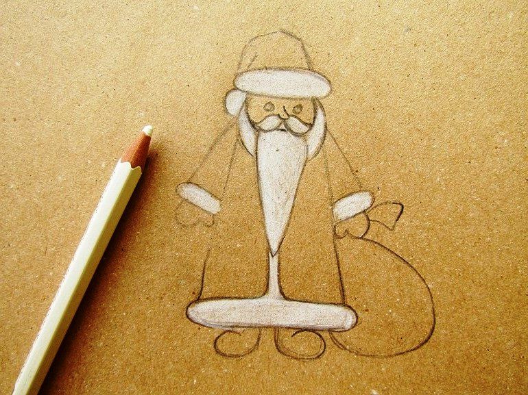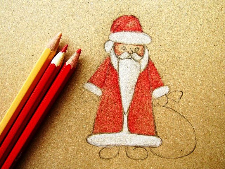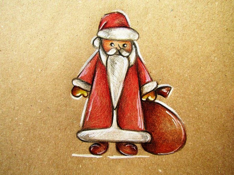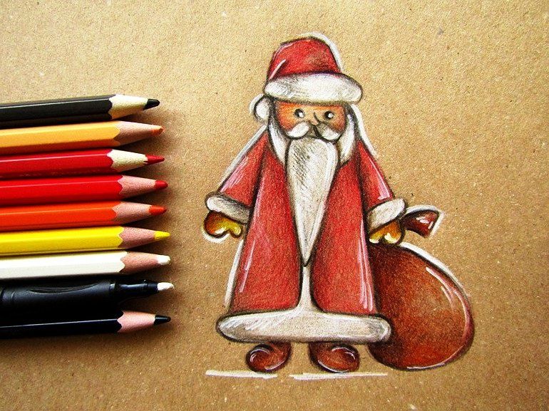 А ако вече знаете как да нарисувате Дядо Коледа, започнете да подобрявате уменията си. Един от най-ефективните методи е да се правят скици по готови картини, като препоръчваме да се използват коледни картички като оригинал, тъй като те са чудесен източник на вдъхновение.