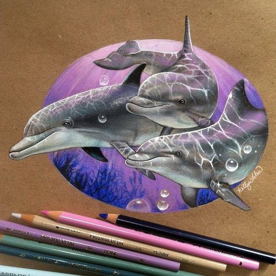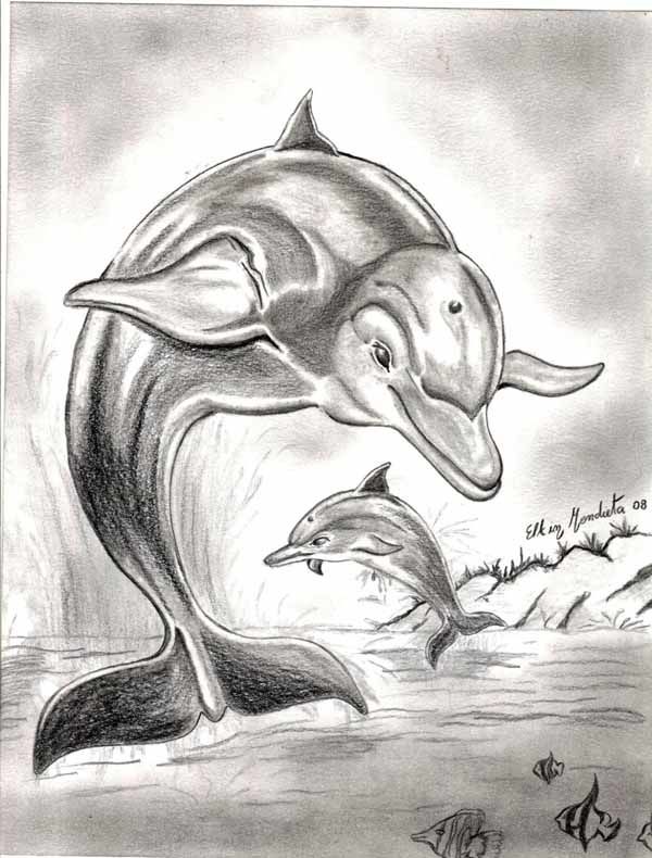 Как да нарисуваме делфин за начинаещи и деца: лесни скици стъпка по стъпка с моливи и цветове