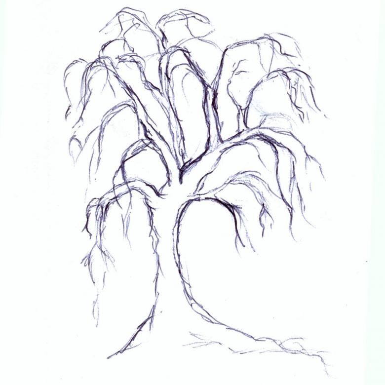 - С по-мек молив се рисуват по-подробно основният ствол на дървото и клоните в близост до ствола. Клоните, които се спускат надолу, трябва да са гладки и тънки.