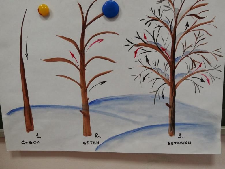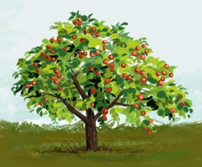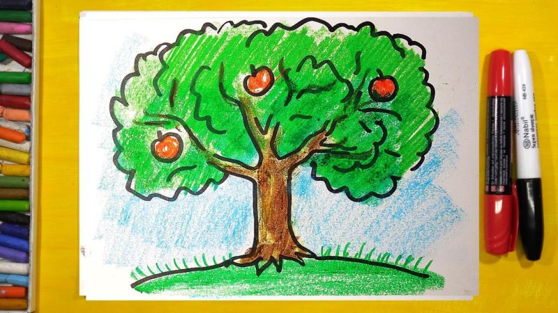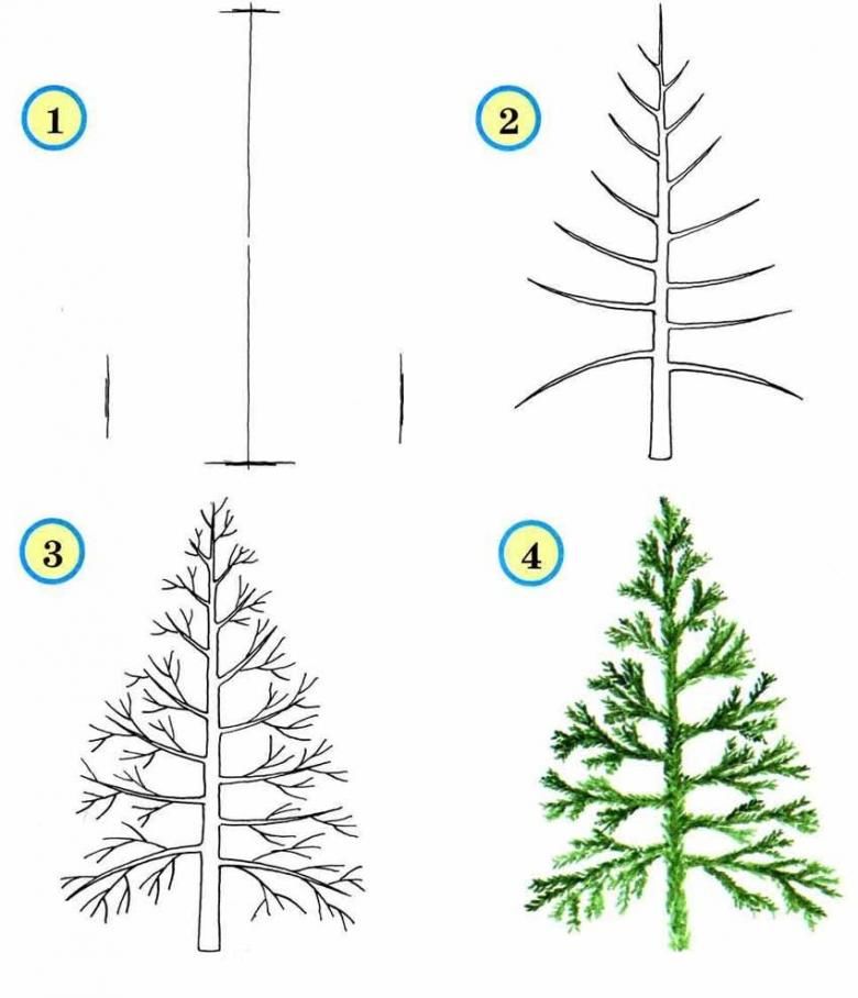 По време на рисуването е най-добре да се ръководите от снимка или скица на дървото, за да уловите формата и особеностите му.