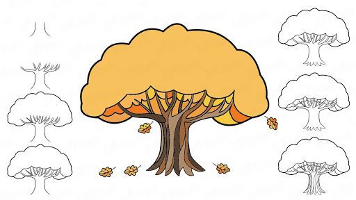 - Означава останалата листна маса на дървото. Дървото трябва да се нарисува в тъмнокафяви или червеникави нюанси, теракота и бордо, за да се предаде атмосферата на есента.