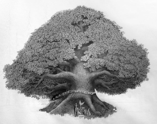 Дъбово дърво за тези, които тепърва започват да се учат да рисуват с молив, стъпка по стъпка.
