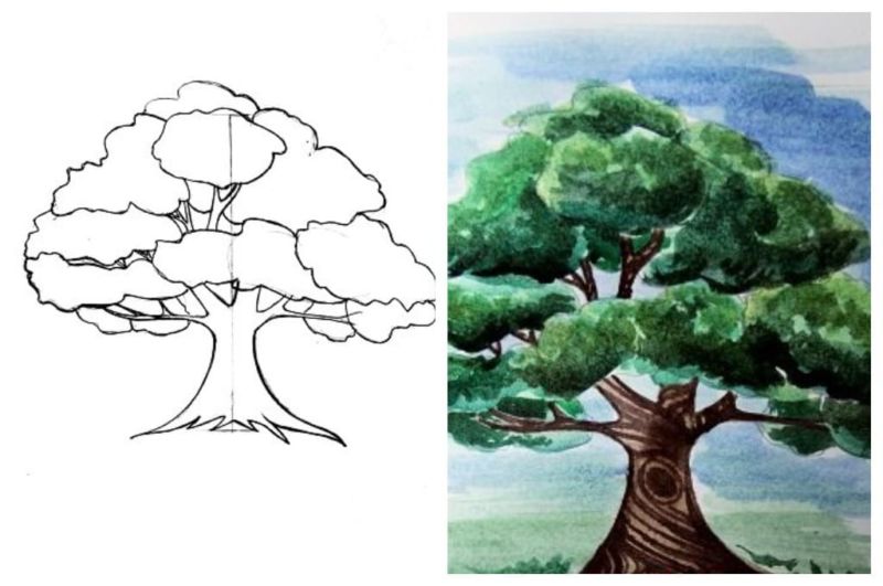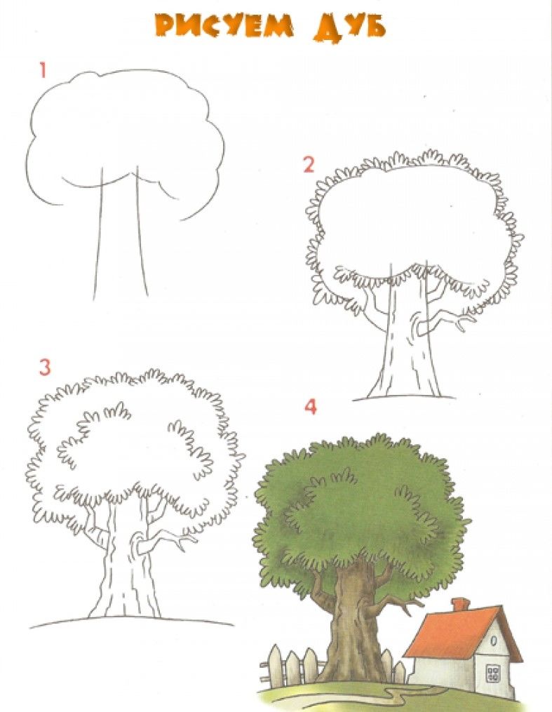 Как да нарисуваме дъбово дърво - лесни инструкции стъпка по стъпка за деца и начинаещи