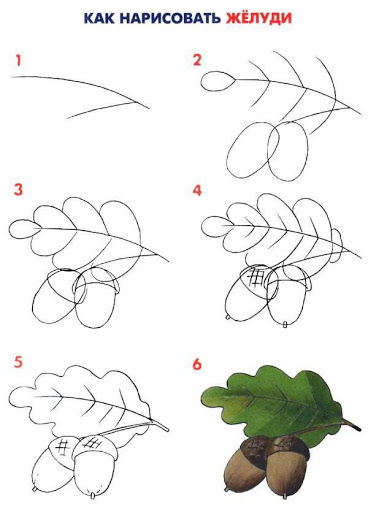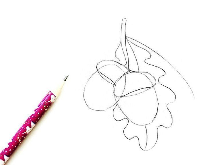 - След това трябва да поставите няколко жълъда. Използвайте овали за тяхната форма. Нарисувайте тялото равномерно.