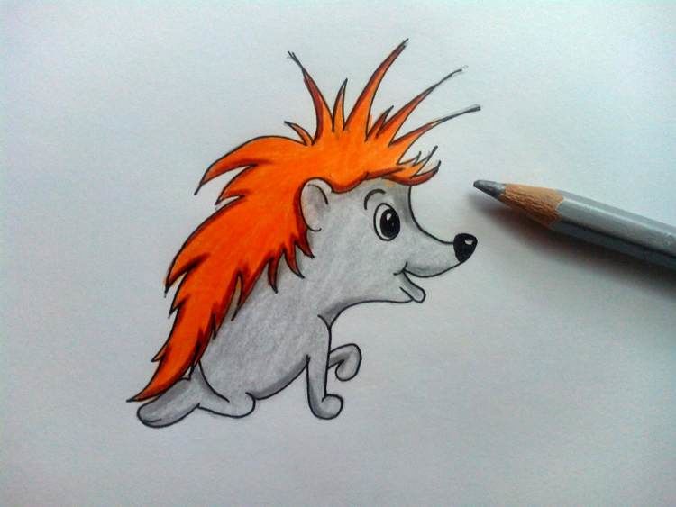 Рисунката е завършена, таралежът е нарисуван. Най-вече прилича на анимационен герой.