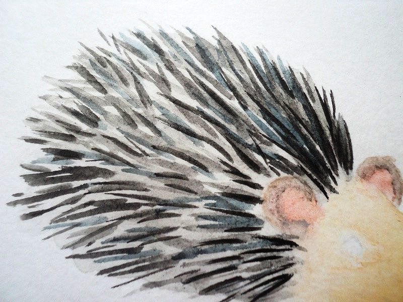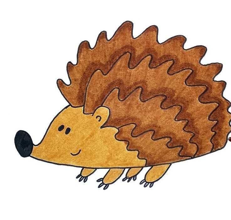- Направете няколко зигзага с черни линии върху светлокафяв фон, като подчертаете отделните иглички по тялото на таралежа.