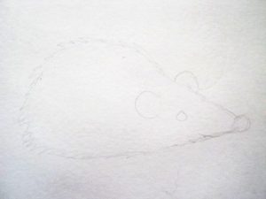 - Начертайте кръгче на ръба на хоризонталната линия, което ще представлява носа на таралежа.