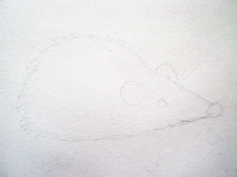 - Отстрани начертаваме продълговат заострен овал. Това е муцуната на таралежа.