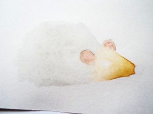 - Вземете светла охра и нарисувайте щрихи върху иглената козина на таралежа. Очертайте ги от центъра към краищата.