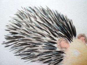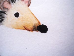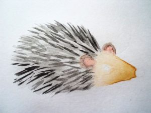 - Очертайте тялото и устата на таралежа с черно, нарисувайте носа и очите.