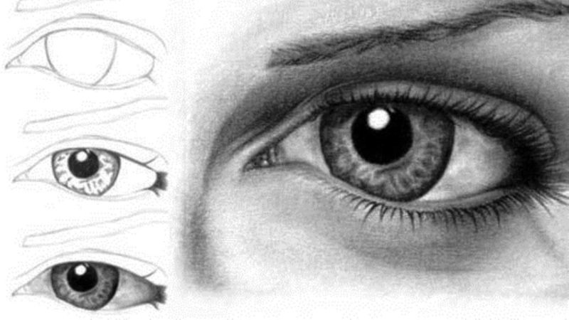 Лесен начин за рисуване на очи стъпка по стъпка