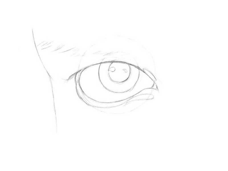 - Потъмнете ириса, като засенчите зеницата и линията, добавяйки гънка на горния клепач.