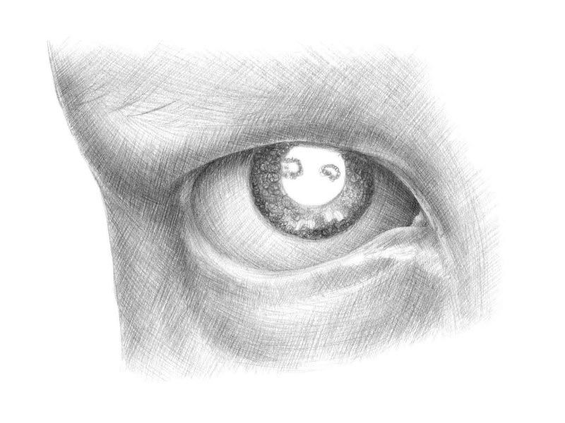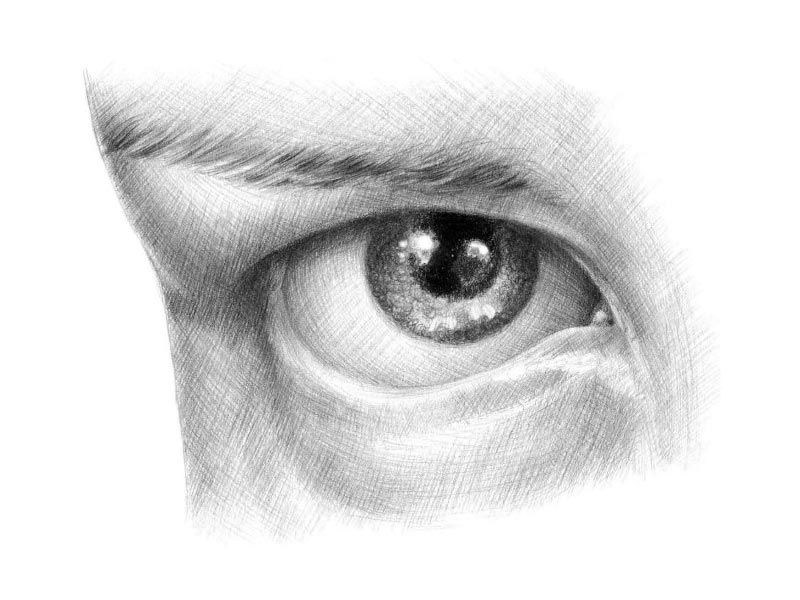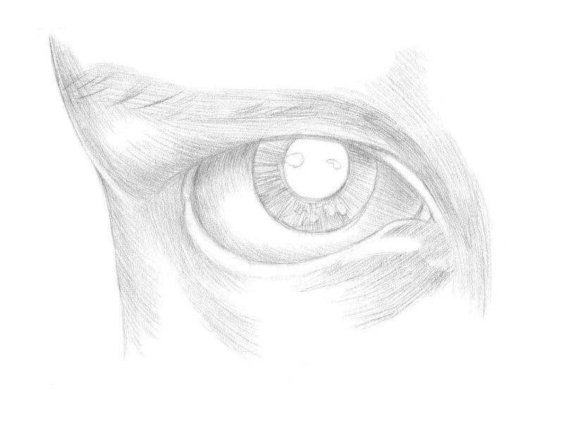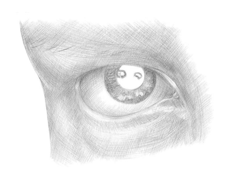 - В заключение, още веднъж засенчете окото с техниката на засенчване до желания резултат, като колкото по-тъмно е то, толкова по-реалистично и живо ще бъде изображението.